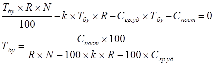 В точке безубыточности Сгр=Сгр.уд× Тбу, где Сгр.уд – стоимость грузопереработки, приходящаяся на 1т грузооборота склада, рассчитываемая по формуле