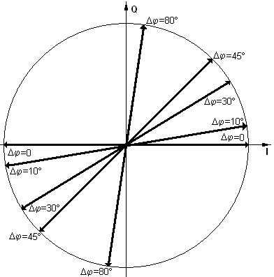 2) Определите критическое значение расфазирования Dj, при котором на выходе демодулятора всегда будут наблюдаться ошибки различения сигналов (шум отсутствует). Зададим расфазирование