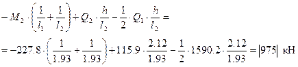 Нагрузки, определяемые в соответствии с указаниями Правил Регистра 1999 г.Ч Ш 2.2.4.2. Q2=(F1/A + F2/Aв)=(424, 1/19 + 1282/13, 7)=115, 9 кН Q1=F-Q2=1706, 1 –115, 9=1590, 2 кН силы, определяемые в соответствии с указаниями Правил Регистра 1999 г.Ч Ш 2.2.4.2. PI=PII=0 в данном случае. Момент