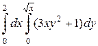1. а) Введем повторный интеграл из условия задачи и вычислим его > I nt(Int(3*x*y^2+1, y=0..sqrt(x)), x=0..2)= int(int(3*x*y^2+1, y=0..sqrt(x)), x=0..2);