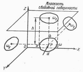 где Px и Pz – горизонтальная и вертикальная составляющие силы давления. Выделим на цилиндрической поверхности элементарную площадку dω, на которую действует направленная по нормали элементарная сила dP=ρ ghdω. Её горизонтальная и вертикальная составляющие: