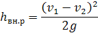 Эта формула показывает, что потеря напора при внезапном расширении потока равна скоростному напору, вычисленному по потерянной скорости (v 1- v 2). Используя уравнение неразрывности, формулу Борда можно привести к виду формулы Вейсбаха (5.17), и получить теоретическое выражение для коэффициента сопротивления ζ M. Действительно, поскольку ω 1 v 1= ω 2 v 2, то