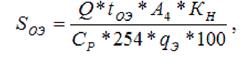 где Кн - коэффициент неравномерности поступления товара на склад (от 1, 2 до 1, 5); Ср - примерная стоимость 1 т хранимого на складе товара, грн./т (эту величину можно исключить из формулы) Q - прогноз годового товарооборота, грн./год (годовое поступление товаров на склад); tпэ - число дней, в течение которых товар будет находиться в приемочной экспедиции; qЭ - вес 1 м3, т/м2 или нагрузка на 1 м2 площади (принимается 0, 25 от средней нагрузки на 1 м2 полезной площади q по складу). Значение дней можно брать 360. Площадь отправочной экспедиции (Sоэ) используется для комплектования отгрузочных партий. Размер площади определяется по формуле: