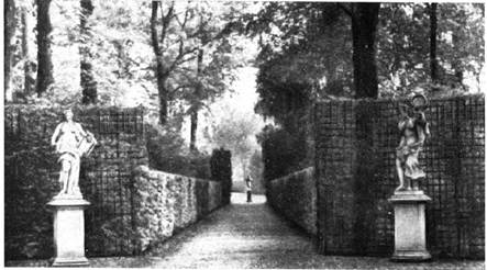 Шпалери – ряд густо посаджених дерев, стрижених у вигляді стіни. Використовувався і тип шпалер, створений із в¢ юнких рослин, опорою для яких була дерев¢ яна решітка. Їх ще називали трельяжами. Шпалери часто набували форму архітектури будівель (рис. 1.28). Утворювали вони справжні мури, яким надавалися певні форми і пропорції, а також стіни залів і театрів, а також кабінетів у боскетах. Виконували архітектурно-пластичні, а також практичні функції: закривали небажані види та захищали від вітру. Залежно від функцій і місця саду створювалися шпалери різного типу: високі, напівповні, ажурні, низькі та шпалери-фігури. Високі шпалери. Являли собою повні стіни, однорідні з верху до низу. Часто утворювали алеї, тоді висота шпалер становила 2/3 ширини. В садових кабінетах шпалери нерідко профілювали, використовуючи архітектурні елементи будинку – цоколь, портал, колону тощо (рис. 1.28). Напівповні шпалери. Їх ще називають італійськими. Складалися з одного або кількох рядів дерев, в яких стрижена частина займала лише певний об¢ єм конструкції, а стовбури залишалися відкритими (рис. 1.28). Дерева в широких шпалерах висаджувалися в шахматному порядку, як це робилося в італійських садах. Ажурні шпалери. Створювали різноманітні декоративні мотиви. Часто це були аркади, над якими виступали крони дерев, кулі та інші геометричні форми (рис.). Низькі шпалери. Стрижені живоплоти, заввишки близько 1, 3 м (щоб не заслоняти краєвиду), які формувалися боками подвійних алей. Деколи їх прямі лінії урізноманітнювалися стриженими кулями або нішами для лавок. Шпалери фігурні. Елементи топіарного мистецтва, відомого з часів Стародавнього Риму. Стрижкою створювалися окремі фігури звірів і людей, або й цілі групи. Переважно зустрічалися в Італії і Іспанії, де був ширший асортимент пластичних рослин (лаври, лавровишні, тиси). Згодом знайшли поширення в Голландії, Фландрії та Англії. Боскети, живоплоти, зелені стіни. Боскет – це компактна об’ємно-просторова композиція, виконана з дерев і чагарників, в яку включають павільйони, фонтани, водні влаштування, скульптуру, партери тощо. Боскети, як правило, презентують відкриту частину композиції, являючи собою чудовий фон для її декоративних деталей. Як зазначає В.П. Кучерявий (2005), залежно від особливостей їх формування боскети поділялися на звичайні, відкриті, шахівницеві і вічнозелені. Звичайний боскетмав регулярну (квадратну чи прямокутну) форму, оточувався стриженим живоплотом. Цими боскетами декорували звичайно різноманітні зали, альтанки, басейни і фонтани. Висота боскетів обмежувалася 9-12 м. У великих боскетах влаштовували великі зали з кабінетами, у середніх – лише один зал, у малих – лише один кабінет або малий зал. Відкритий боскет– наймальовничіший тип з усіх боскетів. Від попереднього типу відрізняється тим, що тут дерева висаджували лише вздовж доріг і довкола площ, які виділяли боскети, зате простір між алеями був вільний: його займали газони. Алеї підкреслювалися низькими (0, 8 м) живоплотами. Всередині боскетів влаштовували зали і кабінети. В боскетах використовували дерева різної форми, а також стрижені форми тису. Шахівницевий боскетпланувався у вигляді шахівниці з квадратами, які оточували рядові посадки дерев без шпалер, розміщені на газоні. Доріжки і майданчики покривали піском. Вічнозелений боскет ств