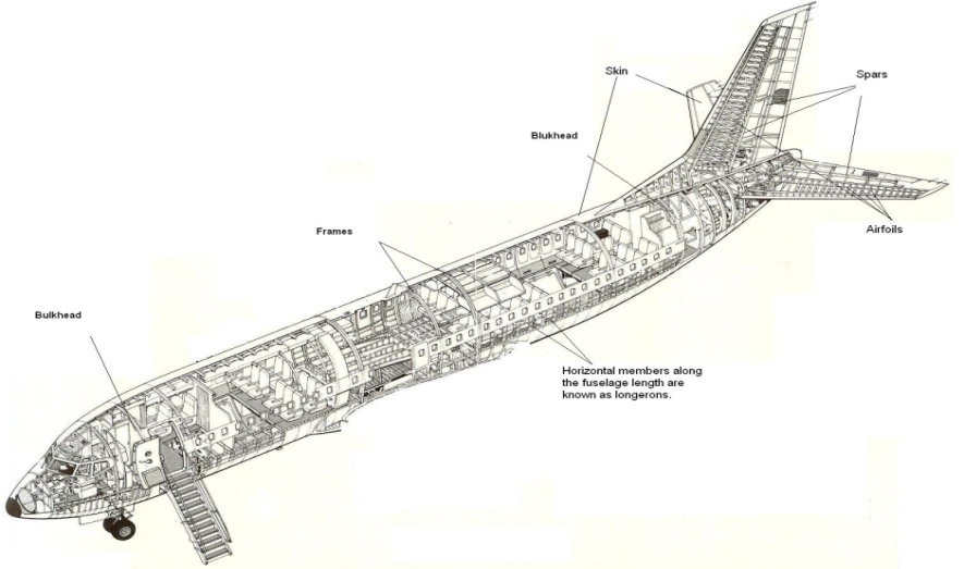 T. This is the fuselage. The fuselage is the largest element of the airplane. The fuselage is the rigid framework. «Rigid framework» is «жорсткий каркас». The rigid framework is built of tubular steel and metal rings. «Tubular steel» means «трубчата сталь». So, what is it built of? S. The fuselage is the rigid framework built of tubular steel and metal rings. T. Quite right. The framework is covered with a skin. «Skin» means «обшивка». The skin should be thin-walled. «A thin-walled skin» is «тонкостінна обшивка». I am sure that you know what material the skin may be made of. S. The skin may be made of fabric, metal, glass or other material. T. You are right. The framework itself consists of longitudinal and transversal members. The longitudinal members are stringers.