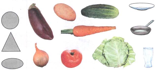 1. Рассмотреть вместе с ребенком картинки. Познакомить его с названиями овощей. Закрепить в словаре обобщающее понятие «овощи». 2. Назвать цвет овощей по образцу: помидор красный,...и т. д. 3. Соединить линиями овощи с соответствующими фигурами. Назвать форму каждого овоща по образцу: «Огурец овальный». 4. Игра «Жадина»: Представь, что это твои овощи. Ответь на вопросы: Чей это огурец? 5. Рассказать ребенку, что готовят из овощей. Игра «Какой сок? Какая запеканка? Какое пюре?»: Скажи, как по-другому называется сок (запеканка, пюре) из моркови?