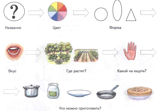 Образец ответа: «Яблоко это фрукт. Оно красное (зеленое, желтое), круглое, сладкое, сочное, растет в саду. Яблоко на ощупь твердое, гладкое. Его едят сырым, из него варят варенье, готовят вкусный сок». 7. Упражнение «Послушай, запомни и назови»: Послушай стихотворение. Запомни и назови, какие овощи росли в огороде. Посадила баба Фекла в огороде лук да свеклу. А любимый внук Антошка посадил чеснок с картошкой, И морковку, и капусту, чтобы борщ был летом вкусный. Не забыл про помидоры: посадил их вдоль забора, Огурцы, укроп, петрушку — чтоб любили все друг дружку. Витаминный огород требует больших хлопот. Баба Фекла в борщ кладет все, что у нее растет.