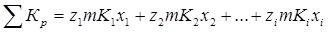 где z1, z2, zi - количество тормозных осей вагона (локомотива); m - число тормозных колодок на колесо (при одностороннем подвешивании m=1 (гр.поезда), при двухстороннем - m=2 (пасс. поезда)); K1, K2, Ki - нажатие одной тормозной колодки, тс. Значение К для грузовых и пассажирских вагонов определяется /2, табл.223/; Х1, Х2, Хi - количественное число вагонов (локомотивов) по типам и осности.