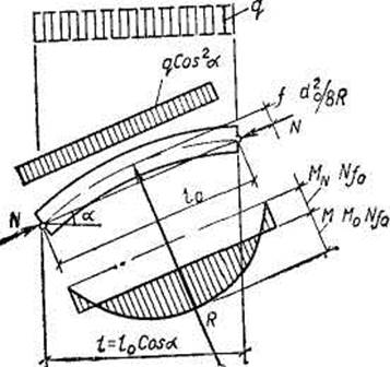 Верхний пояс клееных сегментных ферм очерчен по дуге и разбит на панели крупных размеров. В современном строительстве применяют главным образом металлодеревянные сегментные фермы с клееным верхним поясом и с прямолинейным нижним поясом из профильной или круглой стали. Пролеты клееных ферм рекомендуется принимать до 36 м. Сегментные фермы можно изготавливать и значительно больших пролетов, а при обеспечении надлежащего контроля за качеством, нижние пояса выполнять клееными, причем очертание нижних поясов может быть не только прямолинейным, но и криволинейным. Далее рассматриваются сегментные фермы с прямолинейным нижним поясом. Отношение высоты ферм к пролету рекомендуется принимать не менее 1/6 в случае прямолинейного клееного и не менее 1/7 в случае металлического нижнего пояса. Верхний пояс сегментных ферм рекомендуется изготавливать неразрезным на весь пролет, однако в некоторых случаях это невозможно осуществить по условиям транспортирования или заводской технологии. Тогда верхний пояс может быть изготовлен неразрезным на его половину или состоящим из отдельных блоков, соединяемых в узлах. Стыки гнутоклееных блоков выполняют непосредственным упором торцов или через сварные вкладыши в узлах, закрепленных от выхода из плоскости фермы. В конструктивном отношении верхний пояс представляет собой пакет, склеенный из досок плашмя, имеющий прямоугольное сечение шириной b и высотой h. Поясам сегментных ферм следует придавать строительный подъем, равный 1/200 пролета. Элементы решетки сегментных ферм изготавливают либо из брусьев, либо из клееной древесины. В сквозных конструкциях наибольшие трудности вызывает решение узлов. Чем меньше элементов сходится в узле, и чем меньше усилия в этих элементах, тем проще конструкция узлов. В этом отношении сегментные фермы являются выгодной конструкцией, так как в ней применяется треугольная решетка и в узлах сходится не более двух элементов, которые центрируют в этих узлах Расчет сегментных ферм. Особенности расчета ферм с неразрезным верхним поясом При определении расчетных усилий в элементах сегментных ферм рассматривают следующие сочетания постоянной и временной нагрузок: - равномерно распределенные по всему пролету постоянная и временная; - равномерно распределенные по всему пролету постоянная и на половине пролета временная; - равномерно распределенная по всему пролету постоянная и по закону треугольников временная; - равномерно распределенная по всему пролету постоянная и распределенная по закону треугольника на половине пролета временная. Расчет клееных сегментных ферм начинают с определения продольных усилий в элементах ферм от узловой расчетной нагрузки. Криволинейный верхний пояс заменяют при этом прямолинейным — узлы верхнего пояса соединяют прямыми линиями — хордами, исходя при этом " из предположения шарнирности узлов. Комбинированием полученных усилий определяют максимальные расчетные продольные усилия. Верхний пояс. Вследствие криволинейности верхнего пояса и расположения нагрузки между узлами он работает как сжато-изгибаемый стержень. Расчетный момент М в панели верхнего пояса исчисляют как сумму моментов от поперечной нагрузки I Мо и момента MN от продольной силы N, возникающего за счет выгиба панели M = M0±MN. В случае разрезного верхнего пояс