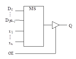 а структурная схема представлена на рис. 4.2г. Структурная схема 2n à 1 с сигналом ОЕ, управляющим Z состоянием его выхода, показана на рис. 4.2е, а выполняемая им функция: