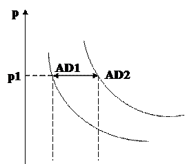 Под влиянием уровня цен изменяется объем АD и экономика перемещается из точки А в точку В: