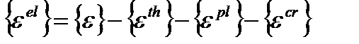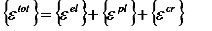 Разница между двумя определениями «полных» деформаций возникла в связи с разным их использованием: { ε } применяется для сравнений с показаниями тензометрических датчиков, а { ε tot } для построения кривых, описывающих поведение материала. Выражение (4.1) может быть дополнено компонентами каких-то особых (уникальных) деформаций, которые в настоящей лекции не рассматриваются.