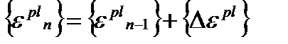 Приращение эквивалентных пластических деформаций получается по формуле (4.23), а сами эквивалентные пластические деформации вычисляются также по известной (4.17) формуле: