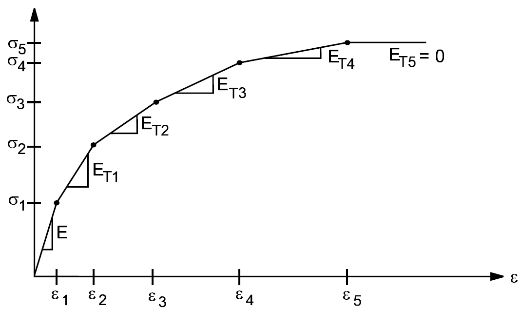 Рисунок 4.5 - Мультилинейная зависимость между деформациями и напряжениями