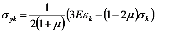 где ε k, σ k – ключевые точки на кривой напряжений-деформаций. Число подъобъемов соответствует числу ключевых точек на кривой напряжений-деформаций Приращение пластических деформаций {Δ ε plk } для каждого подъобъема определяется по критерию фон Мизеса и ассоциированного закона текучести. Отдельно заметим, что раз каждый подъобъем принимается идеальным упруго-пластическим телом, то параметры { α k } и Ck будут равны нулю. Приращение пластических деформаций для полного объема получается следующим образом: