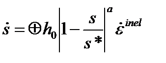 где A – константа материала, в единицах скорости деформации; Q – энергия активации, константа материала, в единицах энергии/объем; R – универсальная газовая постоянная; θ – абсолютная температура; ξ – безразмерная константа материала; σ – действительные напряжения по Коши; s – сопротивление деформированию, в единицах напряжения. Из уравнения (4.56) видно, что неупругие деформации имеют место при любых действующих напряжениях, чего не было в предыдущих моделях, где неупругие деформации начинались только после достижения напряжениями определенной величины. Изменение сопротивление деформированию зависит от скорости неупругих деформаций: