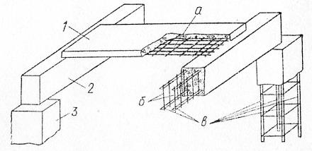 Арматура в железобетонных конструкциях устанавливается преимущественно для восприятия растягивающих усилий и усиления бетона сжатых зон конструкций. Арматура, устанавливаемая по расчету, носит название рабочей арматуры, устанавливаемая по конструктивным и технологическим соображениям, носит название монтажной арматуры. Монтажная арматура обеспечивает проектное положение рабочей арматуры и более равномерно распределяет усилия между отдельными стержнями рабочей арматуры. Кроме того, монтажная арматура может воспринимать обычно не учитываемые расчетом усилия от усадки бетона, изменения температуры конструкции и т.п. Рабочую и монтажную арматуру объединяют в арматурные изделия – сварные и вязаные сетки и каркасы, которые размещают в железобетонных элементах в соответствии с характером их работы под нагрузкой.