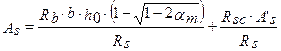 более точно площадь растянутой арматуры можно найти следующим образом. Высоту сжатой зоны бетона найдем из уравнения