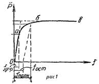 В упругой стадии работы изгибаемого эл-та прогибы нарастают пропорц нагрузке (рис1-уч. о-а), затем при развитии пластич деформ прогибы быстро растут (рис1-уч. а-б), При перегрузке конструкции и раб ее в упругопласт стадии возможны такие случаи, когда развив значит перемещ fполн при сохран нес способности. При этом после снятия нагр часть перемещ сним благодар упр работе кон-ции, а часть fост ост из-за развив пластич деформ. При образовании шарнира пластичности прогибы нарастают