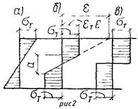 При учете пластической раб металла допуск появ напряж, равных пределу текучести по всей площади попер сеч (рис2 в). Охват пластичностью всей площади может быть только в одном, наиб напряж, сеч.