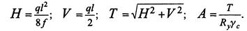 Последовательность расчета: 1)Найти нормативные и расчетные значения постоянной g и временной (снеговой) р нагрузок на 1 м2 покрытия. Назначьте вес пригрузов в пределах g+(0, 1...0, 3)/7. Постоянная нормативная нагрузка g„ д.б.не ниже максимального ветрового отсоса(составляющего не более 1, 5...2, 0 кН/м2. Вычислите расчетную линейную нагрузку на нить, которая при шаге нитей а равна q = [ g + (1, 1...1, 3 р)]*а.