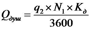 n – продолжительность смены (6-8 часов ); 3600 – количество секунд в часе. Расход воды на душ в литрах за секунду определяется по формуле: