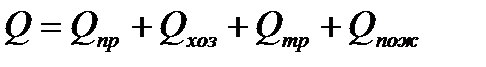 Динамика общей потребности в воде характеризуется диаграммой водопотребления. Самый верхний, «пиковый» объем в указанных временных границах и есть расчетный суммарный максимальный расход воды в литрах за секунду. На практике необходимо учитывать следующее требование – в случае возникновения пожара и его последующего тушения расход воды на остальные нужды уменьшается в два раза. Таким образом, максимальное значение водопотребления должно выбираться из 2-х значений: