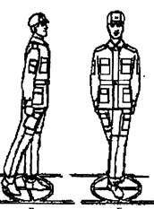 Подати команду на розмикання взводу (відділення) по периметру стройового майданчика на два (чотири) кроки. Подавати команду на виконання, слідкувати за діями тих, хто навчається. При неправильному або нечіткому виконанні елемента, подавати команду «Відставити», вказувати на помилки і повторювати все заново. Особливу увагу приділити тому, щоб поворот виконувався не тільки за допомогою ніг, а й за допомогою різкого руху корпусом в бік повороту з дотриманням усіх правил стройового положення. Після засвоєння порядку виконання прийому за розподілом, приступити до навчання виконання прийому в цілому: подавати команду «Право-РУЧ» і супроводжувати її підрахунком вголос «РАЗ», «ДВА». Ø Тренування Тренування у виконанні прийому проводити під рахунок викладача або під, а потім під власний рахунок студентів чи під барабан. Після 6-8 поворотів дати команду здійснювати підрахунок самим навчаємим, а самому перевіряти виконання ними прийому і виправляти допущені помилки. Звернути увагу: підбор ноги, що стоїть позаду і носок ноги, що попереду повинні бути розвернуті так, щоб після закінчення повороту носки були розвернуті на ширину ступні. Положення рук таке, як і при стройовому положенні. v Розучування і тренування поворотам «ліворуч» і «кругом» проводити в такій же послідовності, як повороту праворуч. Ø Розучування прийомів. За командою " Ліворуч, за розподілом, роби – РАЗ, роби - ДВА": · на рахунок «раз» різко повернутися на лівому підборі і на правому носку, перенести вагу тіла на ліву ногу, зберігаючи правильне положення корпусу, не згинаючи ніг у колінах і не розмахуючи руками під час повороту; · на рахунок «два» приставити праву ногу до лівої найкоротшим шляхом так, щоб підбори були разом, а носки розвернуті на ширину ступні. За командою " Кругом за розподілом, роби – РАЗ, роби - ДВА": · на рахунок «раз» різко повернутися на лівому підборі і на правому носку, не згинаючи ніг у колінах, перенести вагу тіла на підбор лівої ноги, подавши корпус трохи уперед і не розмахуючи руками під час повороту; · на рахунок «два» приставити праву ногу до лівої найкоротшим шляхом так, щоб підбори були разом, а носки розвернуті на ширину ступні.