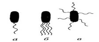 Рис. 11. Види розміщення джгутиків у бактерій