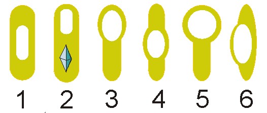 Рис. 15 Розміщення ендоспор у паличковидних бактерій певнх родів: бацилярне (1, 4), клостридіальне (2.3, 5).
