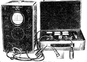 Рис.26 Приведенный на рисунке 26, прибор состоит из измерительного блока со щупами (прямой и призматический) и набора сменных искательных головок (чемодан). Габаритные размеры прибора: 220х335х423 мм, а вес -14 кг. Другие специализированные дефектоскопы: толщиномеры, твердомеры, структуроскопы представлены следующими марками: ДУК-75; У-664; ДУК-15ЦЛАМ; А-311; ЭИТ-1; Волна; УД-22УМ; УС-12ИМ; УТ-55БЭ; УТС-50БЭ; ИГЦ-1 и др. Все перечисленные марки приборов относятся к периоду производства 70 – 90 х годов 20 – го века. Они имеют смешанную элементную базу электроники (радиолампы и транзисторы), поэтому они громоздки и имеют большой вес. В последнее десятилетие мировая электронная промышленность перешла на использование элементов микроэлектроники, что резко уменьшило вес приборов, увеличило надежность их работы и сделало их легко транспортабельными. Применение компьютерной технологии в функциональных схемах приборов, привело к созданию новых возможностей у традиционных способов ультразвуковой диагностики. Современные ультразвуковые дефектоскопы производятся отечественными и иностранными фирмами следующих марок: УД-76 КСК; УД -76 КСК М; УД-73 КСК; UT-301; УДТ-40; ТЭМП-УТ1; УД2-140; УД2В-П46; Вектор; УСД-50; А1212 Профи; А1212 Лайт и другие.