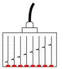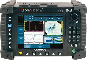 Конфигурация фазированной решётки прибора OmniScan содержит от 16 до 128 активных элементов и может управлять до 256 фокальными зонами. Частотный диапазон от 0, 75 до 18 МГц с ВРЧ. Технология фазированных решёток Рис.28. позволяет формировать ультразвуковой луч с динамическим изменением его параметров, таких как угол ввода, фокусное расстояние и электронным способом перемещать его вдоль датчика. Главным преимуществом метода фазированных решеток - это отображение секторного сканирования, которое позволяет легко обнаружить и интерпретировать связь между дефектами. Примером применения этого прибора являются данные рис28, на котором приведена картина сканирования образеца со сварным швом толщиной 100мм., длинной - 500мм., с наплавкою.