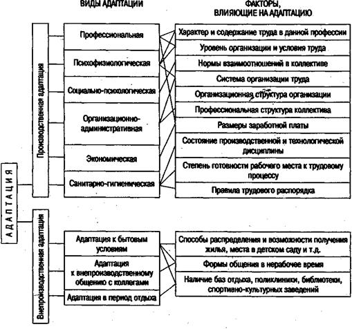 Рис. 5. Виды адаптации и факторы, на нее влияющие.