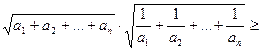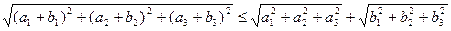 В обох випадках кількість координат векторів може бути взята довільною і ми отримаємо більш загальні, ніж наведені, співвідношення. Рівність в них досягається при умові колінеарності векторів. Наведемо приклади. Задача 3.2.1. Для довільних невід’ємних чисел Доведення. Введемо в розгляд вектори