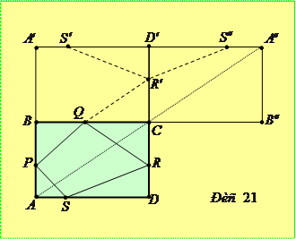 Доведення. Симетризуємо прямокутник відносно сторони , а потім – відносно прямої . При цьому утворяться нові прямокутники та (рис. 21). Очевидно, що периметр чотирикутника буде дорівнювати