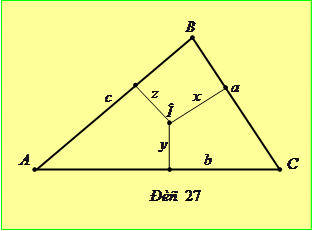 Розв’язання. Нехай відстані від точки до сторін , будуть відповідно (рис. 27). Тоді