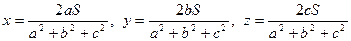 де - площа даного трикутника. Сума квадратів відстаней від точки до сторін трикутника буде дорівнювати . В силу нерівності Коші - Буняковського виконується співвідношення