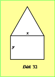 Розв’язання. Нехай – сторона трикутника, – сторона прямокутника (рис. 32). Тоді периметр , звідки .Очевидно, що площа всієї фігури буде