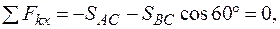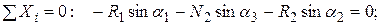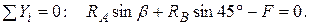 Выбирая координатные оси х и у, записываем уравнения равновесия в проекциях на эти оси: