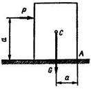 Определить, опрокинется ли тело под действием силыили будет находиться в устойчивом состоянии, можно и графическим путем. Для этого продолжим линии действия сил Продолжая линию действия равнодействующей силы, найдем точку ее пересечения с опорной плоскостью. В рассмотренном примере возможны три случая: 1. Если эта точка лежит слева от ребра А, то состояние тела устойчиво. 2. Если линия действия равнодействующей пересекает ребро А, тосостояние тела предельно устойчиво. 3. Если эта точка лежит справа от ребра А, то тело опрокинется.