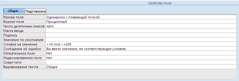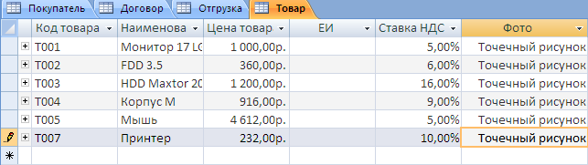 6. «Логический тип данных» используется если, необходимо установить флажок «Да» или «Нет», этот тип данных был использован для поля «Наличие товара».