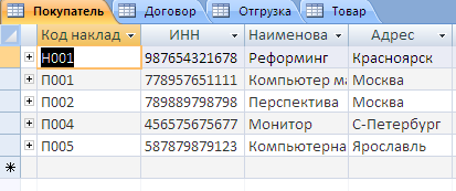 Наполненная данными таблица «Покупатель» показана на рис.4.