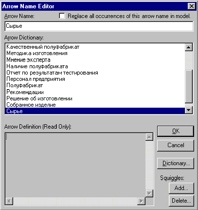 Рис.3 Словарь стрелок. После создания контекстной диаграммы можно приступить к декомпозиции. Для этого нужно кликнуть по кнопке перехода на нижний уровень
