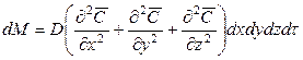 Пусть через этот элементарный параллелепипед за счет молекулярной диффузии перемещается вещество. Если через грани