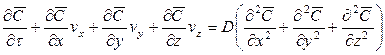 В этом уравнении сумма членов Увеличение количества распределяемого вещества за счет молекулярной диффузии определяется уравнением (12.14). Приравнивая уравнение (12.17) к (12.14) и заменяя локальное изменение концентрации