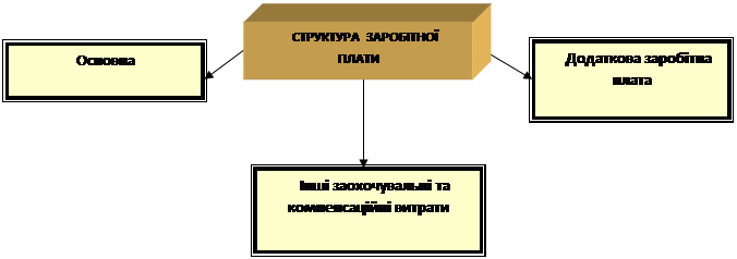 Основна заробітна плата – цевинагорода за виконану роботу відповідно до встановлених норм праці (норми часу, виробітку, обслуговування, посадові обов’язки). Вона встановлюється у вигляді тарифних ставок (окладів) і відрядних розцінок для робітників та посадових окладів для службовців. Додаткова заробітна плата - це винагорода за працю понад установлені норми, за трудові успіхи та винахідливість і за особливі умови праці. Вона включає доплати, надбавки, гарантійні і компенсаційні виплати, передбачені чинним законодавством; премії, пов’язані з виконанням виробничих завдань і функцій. Інші заохочувальні та компенсаційні виплати — це виплати у формі винагород за підсумками роботи за рік, премії за спеціальними системами і положеннями, компенсаційні та інші грошові й матеріальні виплати, які не передбачені актами чинного законодавства або які виплачують понад встановлені зазначеними актами норми. Під організацією оплати праці слід розуміти правильне використання основних положень законодавства про працю, що спрямовані на забезпечення взаємозв'язку кількості та якості праці з розмірами її оплати. Організація оплати праці здійснюється на підставі: · законодавчих та інших нормативних актів; · генеральної угоди - на національному рівні; · галузевої (міжгалузевої) угоди - на галузевому рівні; · територіальної угоди -на територіальному рівні; · колективних договорів – на виробничому рівні; · трудових договорів. Згідно статті 15 Закону України «Про оплату праці» форми і системи оплати праці, норми праці, розцінки, тарифні сітки, схеми посадових окладів, умови запровадження та розміри надбавок, доплат, премій, винагород та інших заохочувальних, компенсаційних і гарантійних виплат встановлюються підприємствами у колективному договорі з дотриманням норм і гарантій, передбачених законодавством, генеральною, галузевими (міжгалузевими) і територіальними угодами.