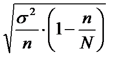Например, по условию задачи № 1 значение вариант - это соответствующий стаж работы, веса (частоты) вариант - число уволившихся. Предельная ошибка выборочной средней при бесповторном случайном отборе рассчитывается по формуле