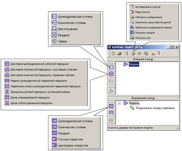 Рисунок 3.5 – Елементи керування модуля побудов КОМПАС-SHAFT 2D