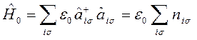 Слагаемое, описывающее потенциальную энергию электронов, локализованных на узлах, представляет сумму операторов числа частиц: