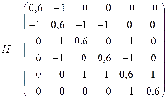 Из-за того, что матрица гамильтониана в данном примере симметрична (а в общем случае – эрмитова), можно почти вдвое сэкономить время расчёта, вычисляя только нижнюю (под главной диагональю) или верхнюю части матрицы и главную диагональ. Необходимо сразу заметить, что правильный выбор граничных условий принципиален и решается он для каждой физической задачи строго индивидуально. Действительно, так если сделать граничные условия нулевыми, т.е. разорвать связь